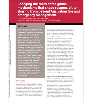 Changing the rules of the game: mechanisms that shape responsibility-sharing from beyond Australian fire and emergency management