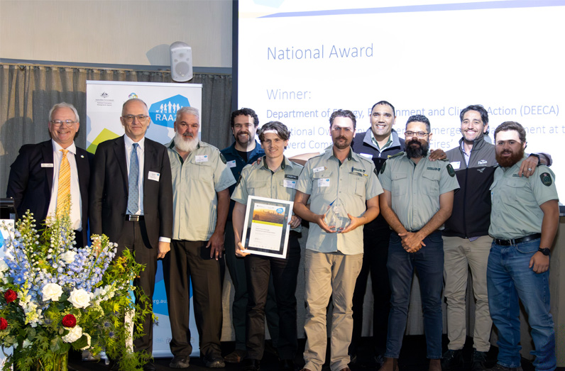 The Department of Energy, Environment and Climate Action, Victoria, was presented with the Resilient Australia National Award for their project, Traditional Owners involvement in Emergency Management at the Gariwerd Complex and Little Desert Fires.