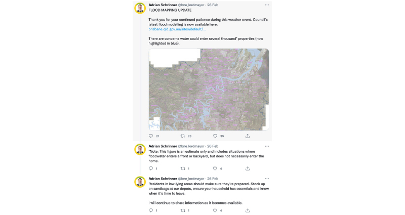 Figure 3: Tweets by Brisbane Lord Mayor Adrian Schrinner.