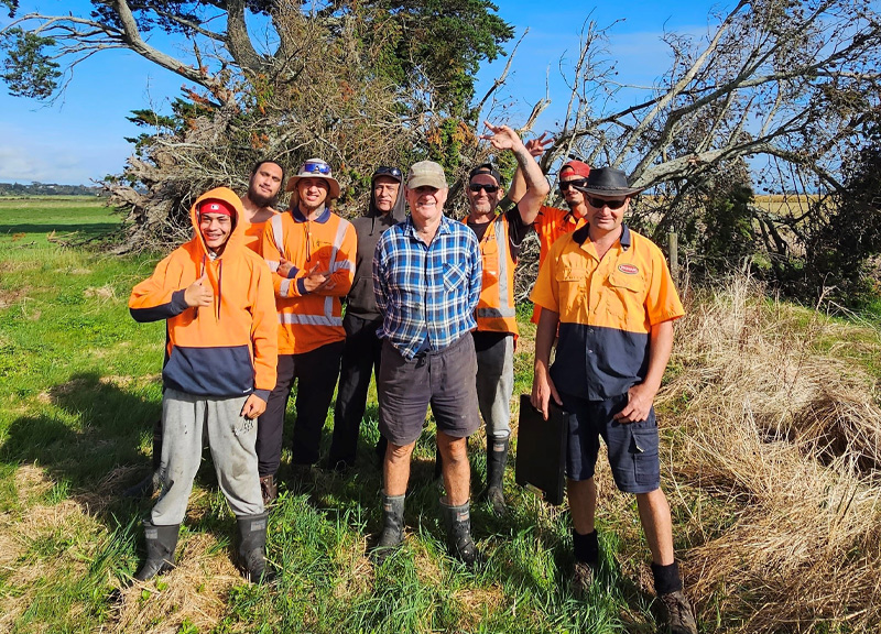 Members of the Enhanced Task Force Green team with a Northland farmer. Enhanced Task Force Green was a key component of Northland's cyclone recovery and worked with more than 130 farmers across the region.