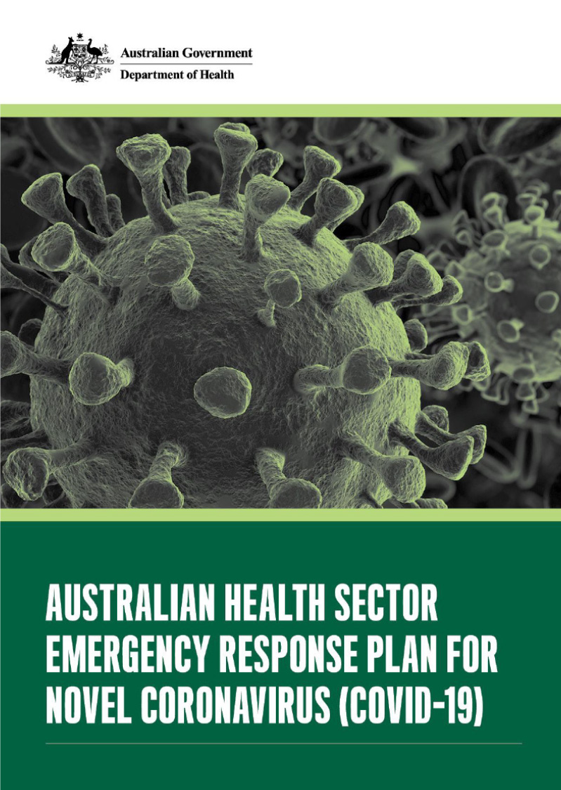 | Australian Health Sector Emergency Response Plan for Novel Coronavirus (COVID-19) (Australian Government Department of Health 2020) | Outlines COVID-19 specific arrangements to supplement national arrangements for the communicable diseases. Published 2020; 56 pages. |