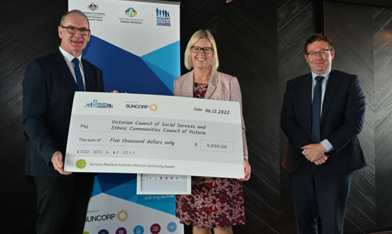 The Suncorp Resilient Australia National Community Award was given to the Victorian Council of Social Services and Ethnic Communities Council of Victoria Multicultural Resilience Program, based in Melbourne. The program brought together multicultural communities and emergency management leaders to learn from one another, helped strengthen community resilience and reduced the disruptive effects of COVID-19 in multicultural communities. It also increased mutual understanding and trust between multicultural communities and emergency management organisations. It is working toward greater cultural safety for all who work in and with emergency management organisations.