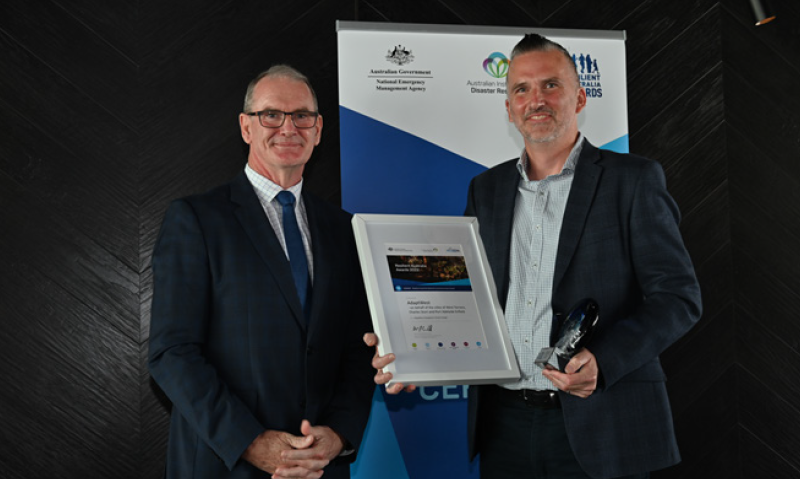 Bellingen Shire Council accepted the Resilient Australia National Local Government Award from Brendan Moon.