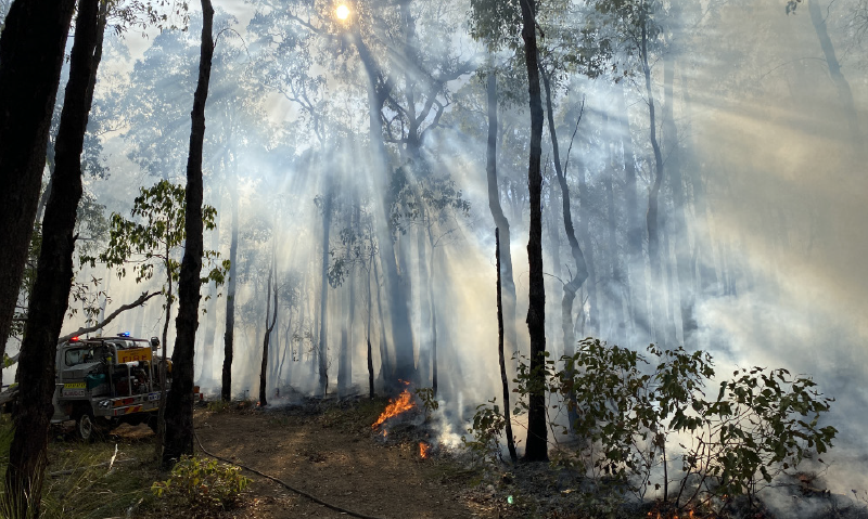 Andrew Haselden was also highly commended for his photo ‘Autumn burning – a return to normality’. It was taken at the end of a hazard reduction burn conducted in early autumn and shows the calm of the dying intensity of a fire which burnt in a heavily fuel loaded block. As the smoke clears and the sun shines through the newly burnt bush, it is with a quiet sense of relief that the crew once again happily pitch in to get the job done as a team.