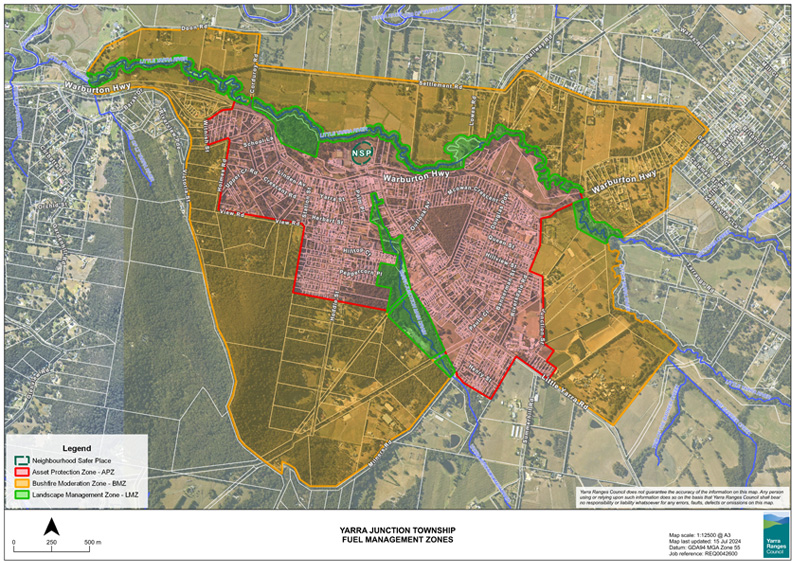 Figure 1: Yarra Junction township fuel management zone map.