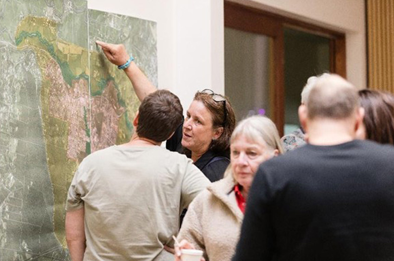 Community members locate their property on the Yarra Junction fuel management map during the community event.
