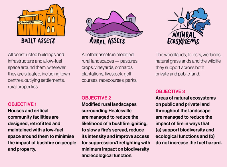 Figure 2: Three land-use categories of the Healesville Bushfire Impact Mitigation Plan.