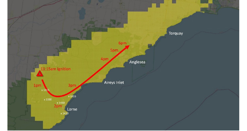 Figure 1: A simulated fire scenario in the Surf Coast Shire used as the basis for the IMT exercise.