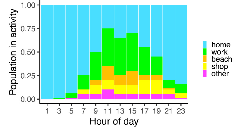 Figure 3: Example expected distribution of daily activities for the resident sub-population used as an input for synthetic population generation.
