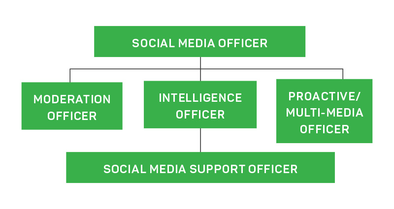 Much like the Media Unit, the basic structure of the Social Media Unit could include a Social Media Officer and Social Media Support Officer. In a Level 3 IMT, the Social Media Unit could be expanded to include roles such as a Moderation Officer, Social Media Intelligence Officer and Proactive/Multi-Media Officer. The tasks these roles would be responsible for are consistent and need to be filled in most major incidents.