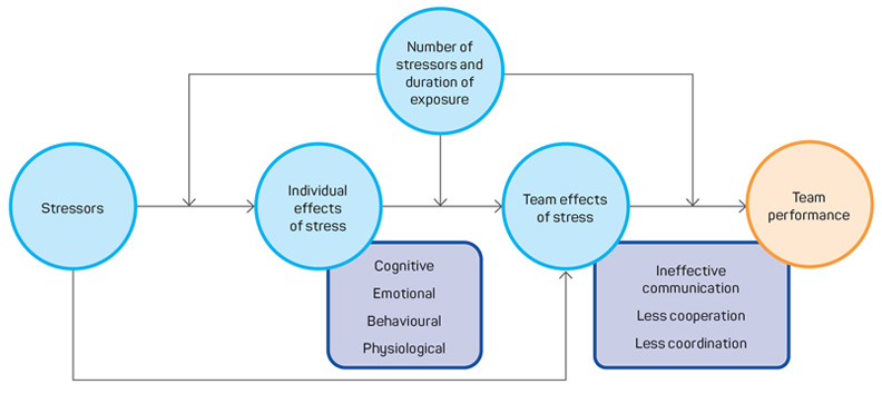 Salas et al. (1996) define stress as a ‘process by which certain environmental demands…evoke an appraisal process in which perceived demands exceeds resources and results in undesirable physiological, psychological, behavioral, or social outcomes’ (p.6). Dietz et al. (2017) described 4 categories of emergency management stressors: