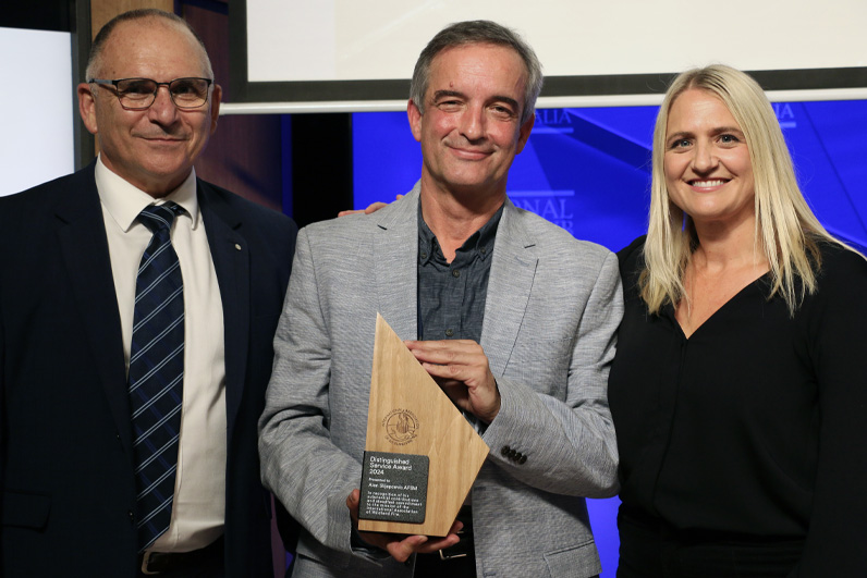 The IAWF acknowledged Alen Slijepcevic AFSM, Country Fire Authority, with the Distinguished Service Award, recognising his commitment and outstanding contribution to furthering the goals of the Association. Alen is well known in the Australian and international fire science and management sectors.